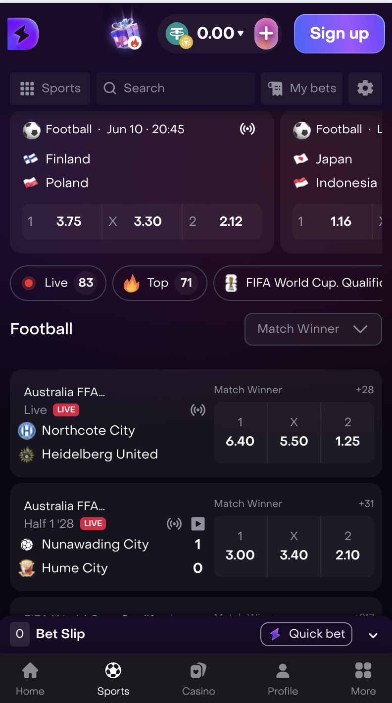 You’ve got a great interface and more live matches than many other new crypto betting sites I’ve reviewed. Football, tennis, basketball, hockey, and MMA are all easy to find and bet on.