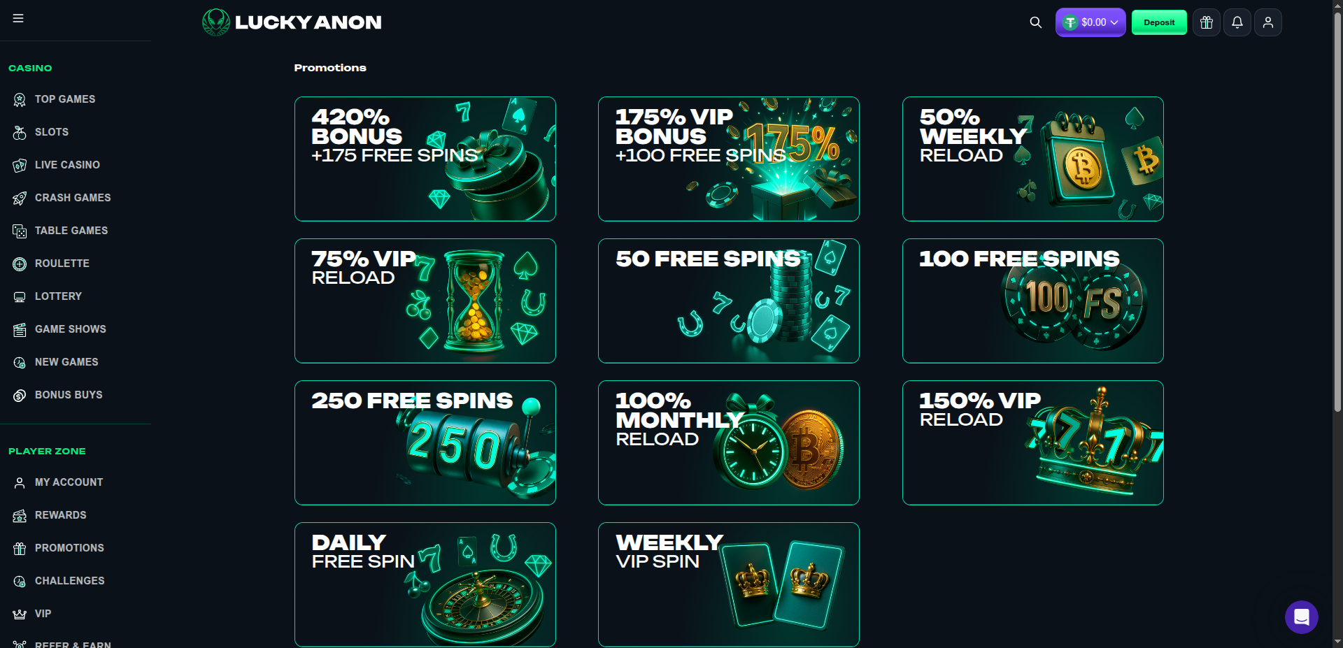 As with any new casino site, I’m initially curious. But there’s a lot here at Lucky Anon that has caught my attention. Where do I start?