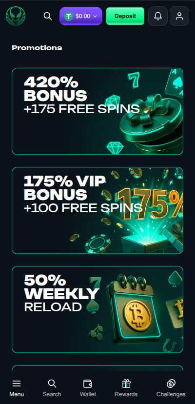- First Deposit: 175% up to $5,000 + 100 free spins