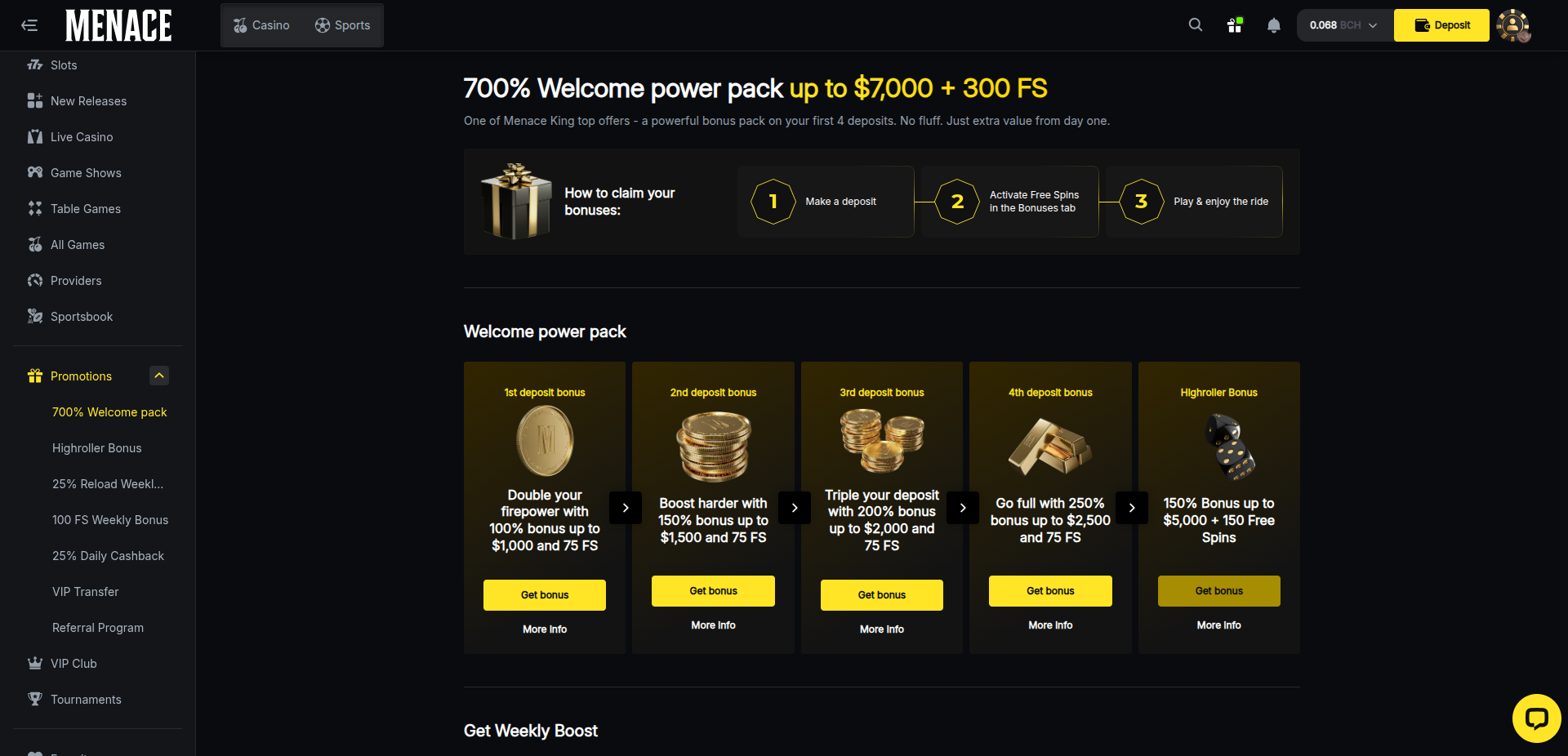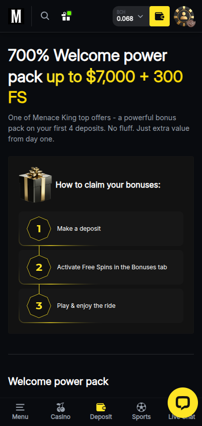 Menace isn’t holding back with the Bitcoin casino bonuses, but they sure are holding something. Here's the quick breakdown: